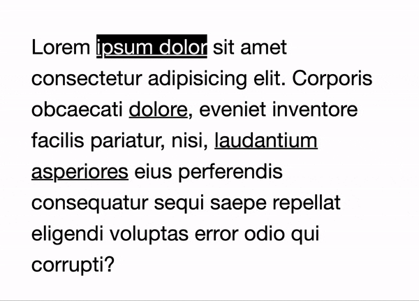 As stated before, we first make sure that links use the same color as the text, then we start leveraging the power of custom properties. This is the inverting of the colors in action. We’re actually done with the styling of the links. Don’t believe me? Check this out. We’re going to make ourselves a nice colored box. First the markup.